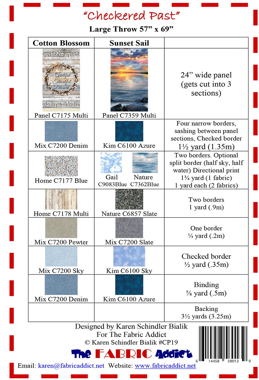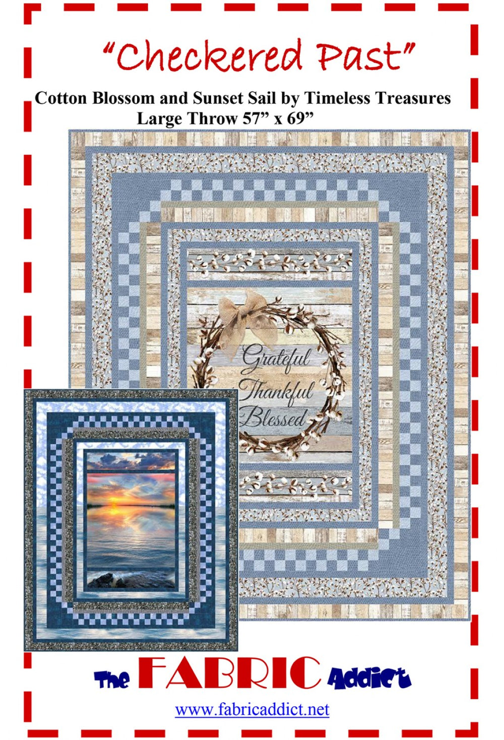 Quilt pattern, Large Throw 57 x 69, Featured fabrics Cotton Blossom and Sunset Sail by Timeless Treasures, uses 24" vertical panel.