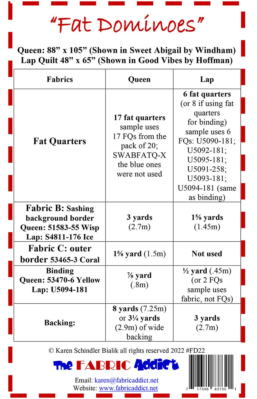 Fat Dominoes Quilt Pattern is backordered and will ship as soon as it is back in stock.