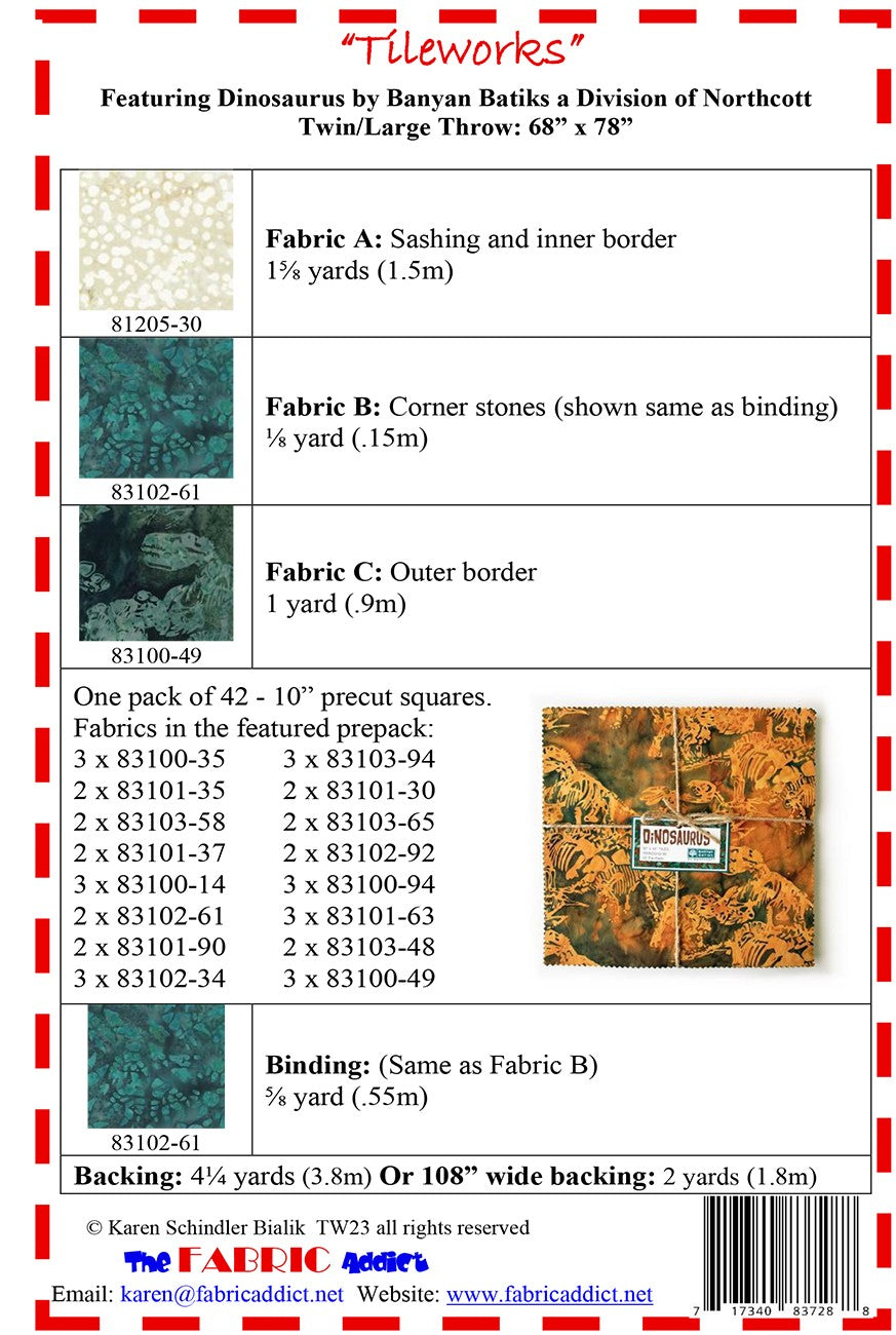 Tileworks quilt pattern. Twin/Throw size. Uses one pack of 42 - 10” precut squares. Easy to piece.