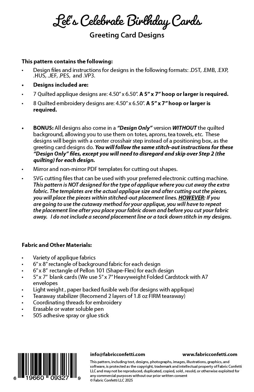 Let's Celebrate Birthday Cards Downloadable Pattern