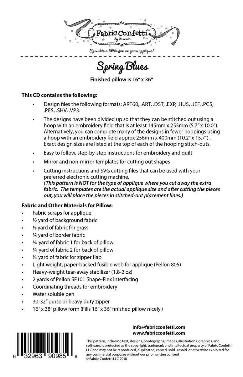 Digital Spring Blues for Machine Embroidery Pattern Found Here