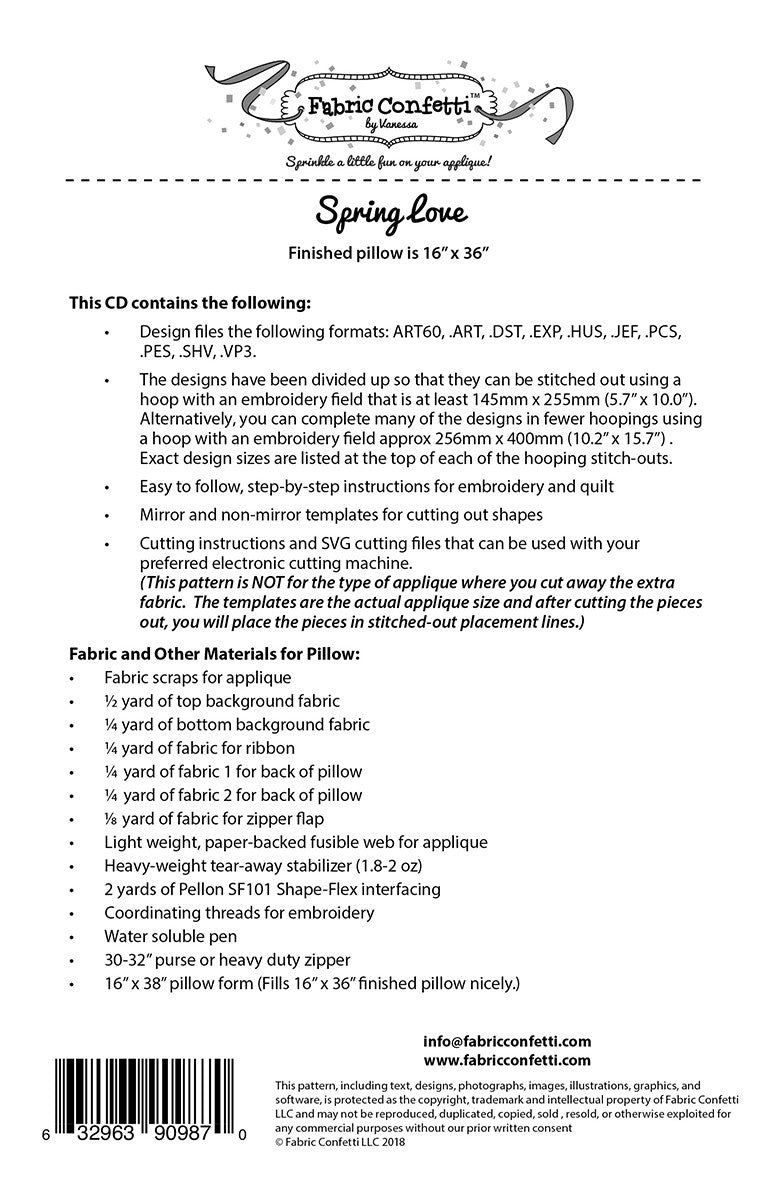 Spring Love Bench Pillow Pattern is backordered and will ship as soon as it is back in stock.