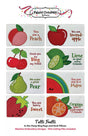 Designs included are: We Make a Great PEAR; LIME So Glad We're Friends; Thank You for BING My Friend; You Are a PEACH; ORANGE You Adorable; ORANGE You Glad We're Friends; You Are Berry SWEET; You Are One In a MELON; and You Are INCRED-APPLE. Designs are: 6in x 10in. A 6.29in x 10.2in (160 x 260) hoop or larger is required. The designs do not fit the Bernina Midi hoop because of the square corners.