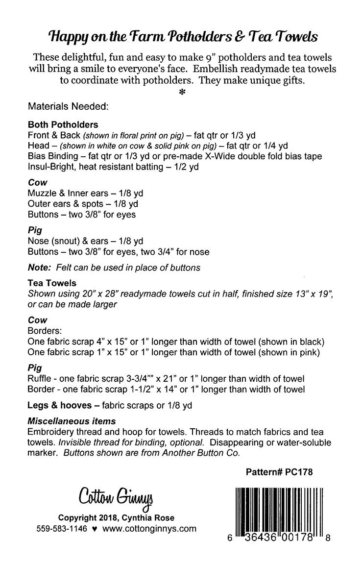 Happy On The Farm Potholders & Tea Towels Pattern is backordered and will ship as soon as it is back in stock.