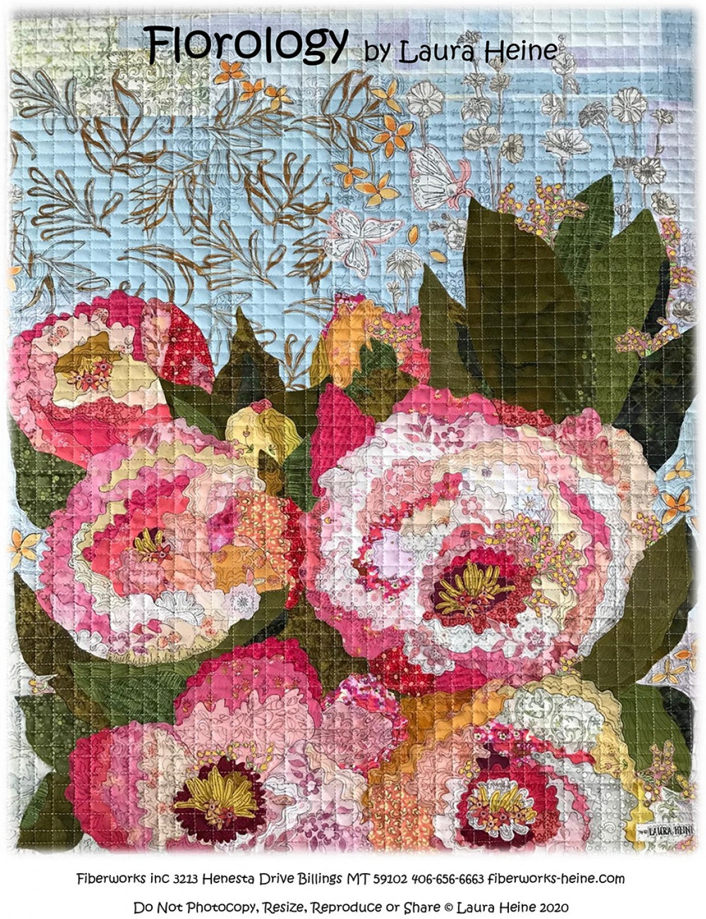 Florology Collage Pattern by Laura Heine. This beautiful peony flower quilt pattern includes complete step by step color instructions to make this collage.