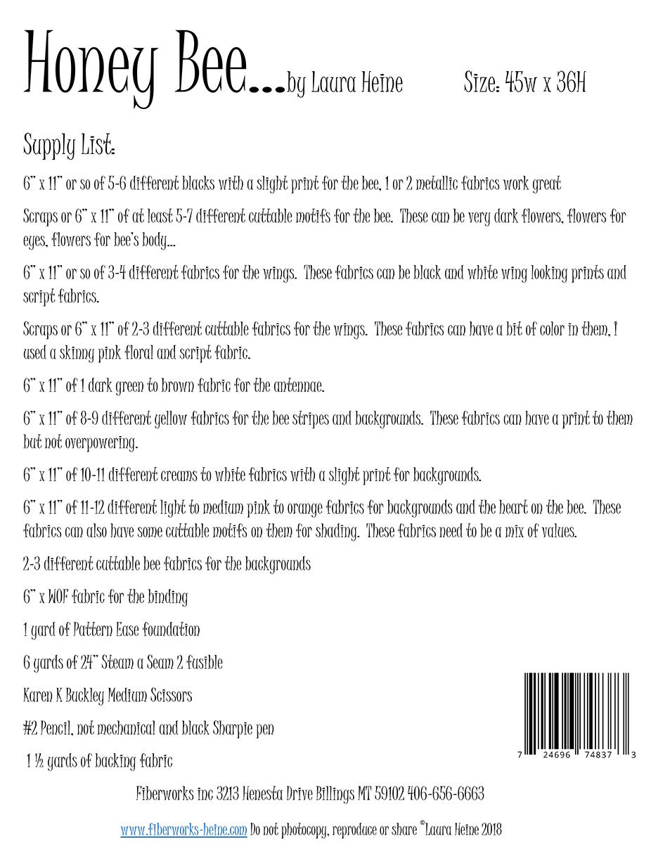 Honey Bee Collage Pattern by Laura Heine. Full size pattern and complete color instruction included. Size 45in x 36in