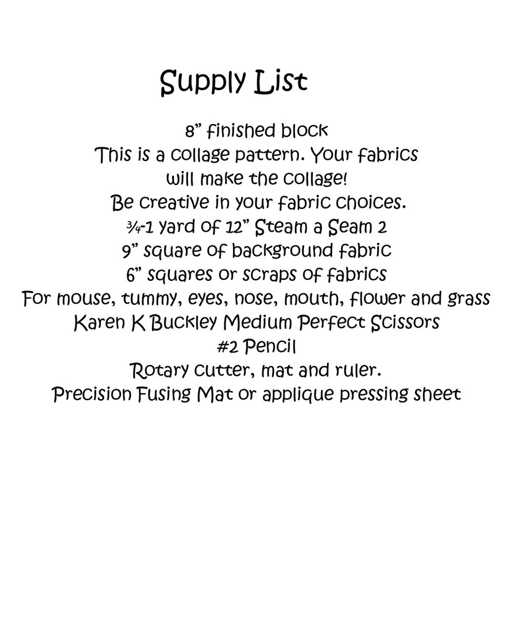 Whatevers! 13 Gus Gus... The Mouse Collage Pattern by Laura Heine is backordered and will ship as soon as it is back in stock.