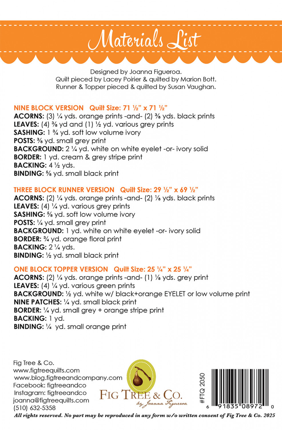 Sizes: Nine Block Version 71.5" x 71.5" Three Block Runner Version 29.5" x 69.5" One Block Topper Version 25.25" x 25.25"
