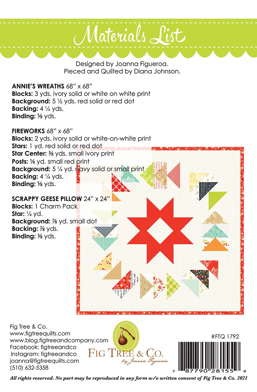 This quilt was inspired by a vintage beauty that my quilty friend Susan fell in love with. The challenge to get the block to feel like a circle but be easily pieced with basic piecing techniques was a design challenge that I really enjoyed. The outcome is such a beautiful two color quilt. Of course we are equally smitten by it in a striking patriotic design or a scrappy charm pack pillow too. All three versions available in the pattern. Quilt Size: 68in x 68in. Pillow is 24in square.