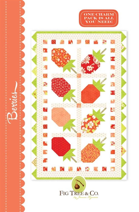 If you are a berry fan then this is for you! This pattern is the perfect excuse to play with your favorite summer feeling charm pack! Simple construction & fun (optional) prairie points finish off this charming seasonal runner.