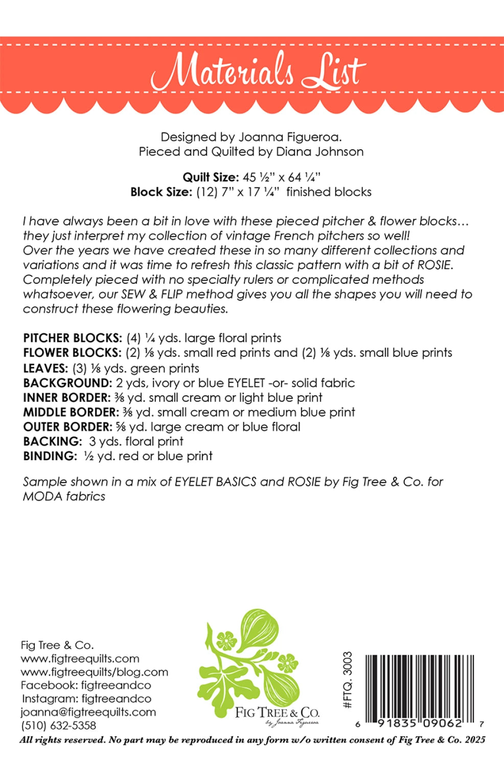 I have always been a bit in love with these pieced pitcher & flower blocks… they just interpret my collection of vintage French pitchers so well!