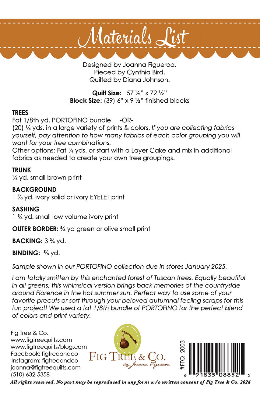 Trees in Tuscany Quilt Pattern is backordered and will ship as soon as it is back in stock.