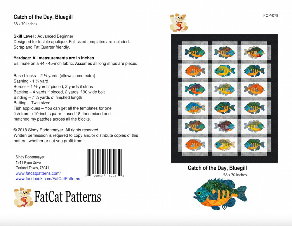 Catch of the Day, Bluegill Quilt Pattern is backordered and will ship as soon as it is back in stock.