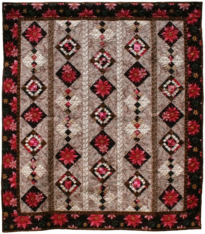 This lovely feminine design will look wonderful using one of the many large floral, oriental or paisley fabrics available today. The blocks are quick and easy to piece. Then a perfect stripe or contrast fabric will show off your strings of blocks. Advanced beginner