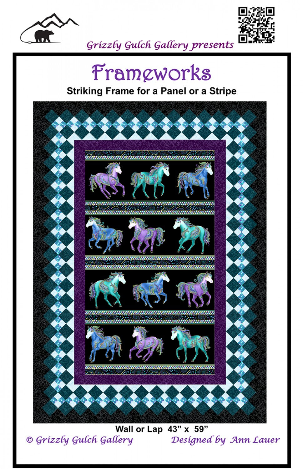 Wall/Lap Quilt 43 x 59. Frame a panel or a stripe with this striking design. Easy and only 6 fabrics from Horsen Around by Ann Lauer for Benartex.