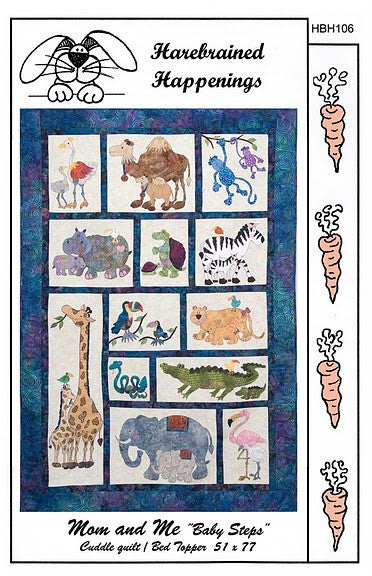 The delightful assortment of jungle friends will surely elicit a smile, even to the likes of Oscar the Grouch! The babies are venturing out for the first time under the watchful eye of their Moms. It is machine appliqued and machine pieced. Finished size 51 x 77.