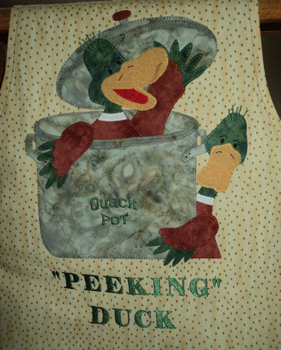 "PEEKING DUCK" (Peking Duck) is exactly what you see “ two Mallard ducks peeking from, or around, the "Quack Pot".