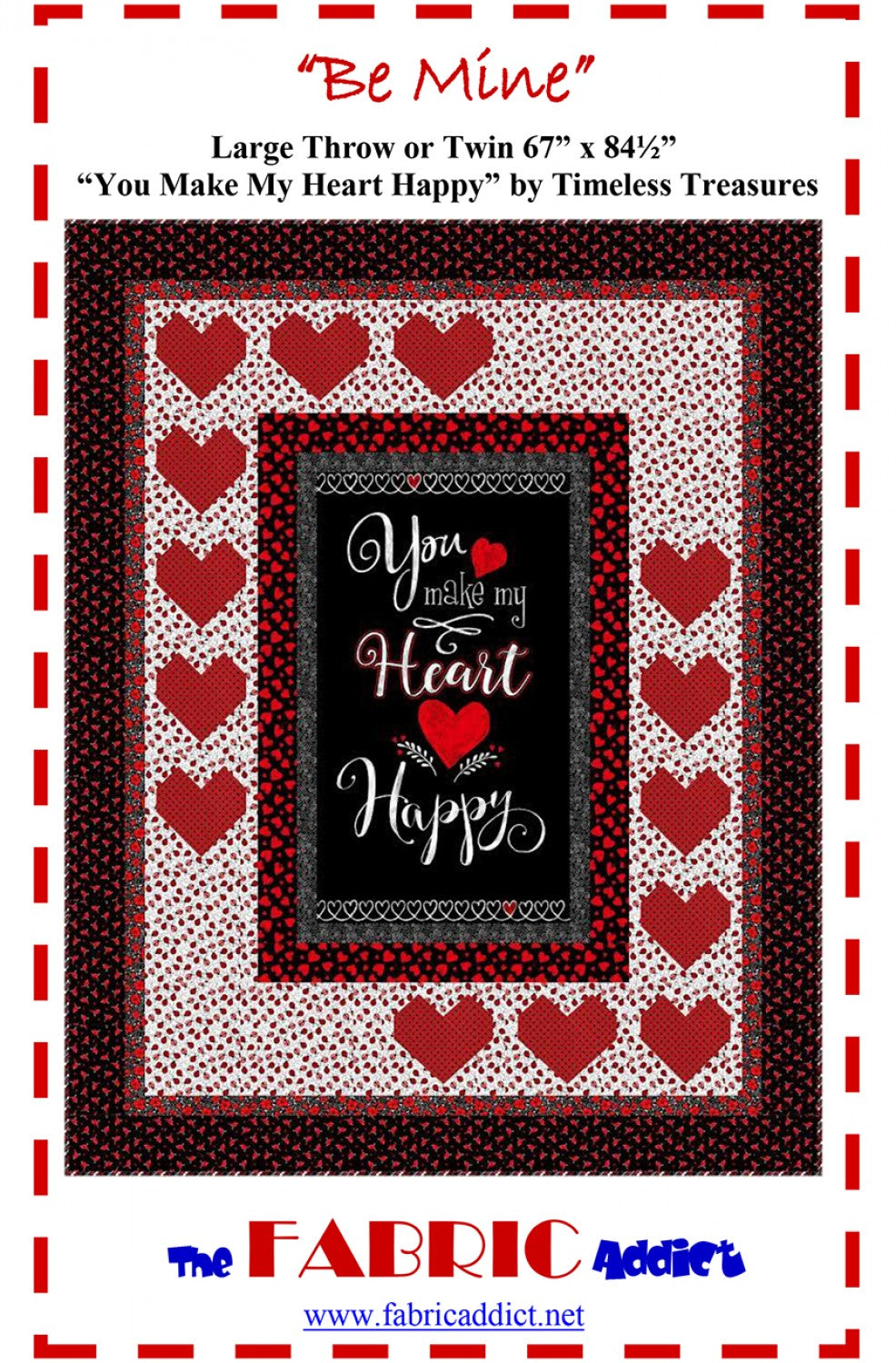 Be Mine quilt pattern. Large Throw/Twin - 67 x 84 1/2 inches. Panel quilt - uses panel at least 23 inches wide.