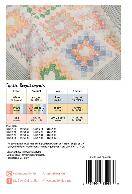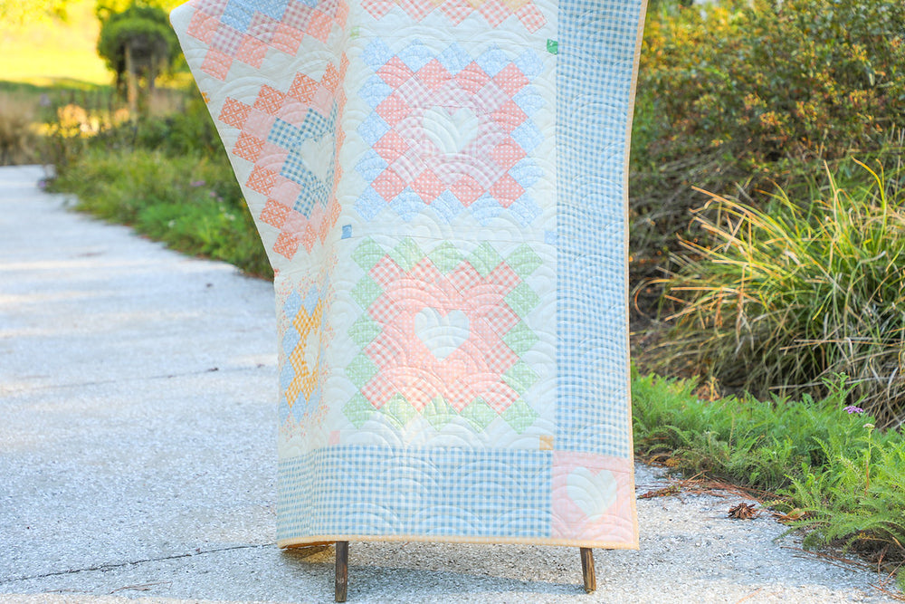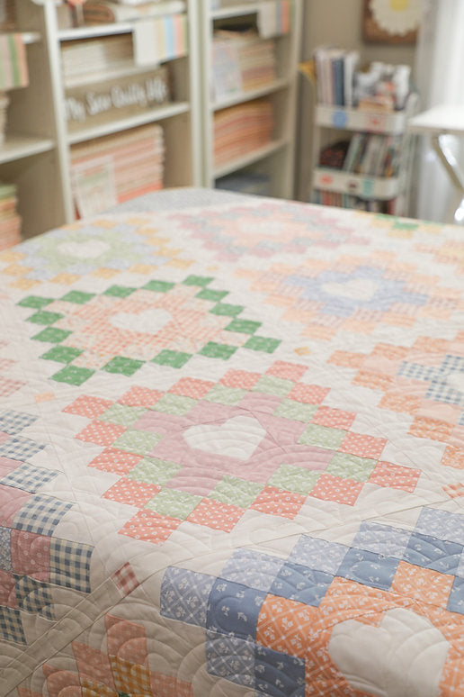 Designed with the Cottage Charm Fabric Collection, Granny’s Heart celebrates the beauty of small prints and ginghams, allowing you to showcase a variety of colors and textures.