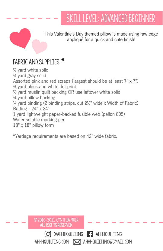 Hearts & Swirls Quilted Pillow Pattern is backordered and will ship as soon as it is back in stock.