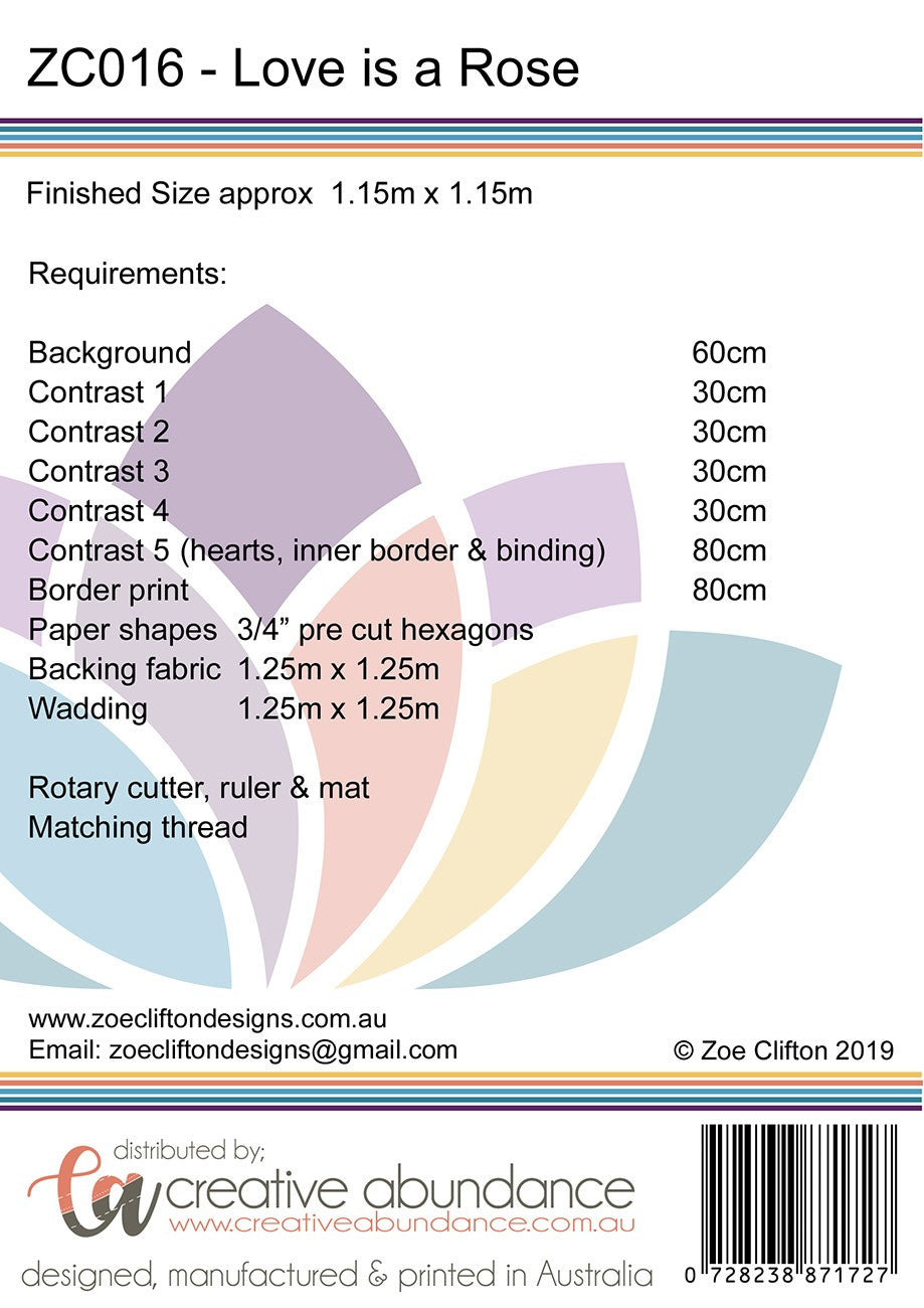 So sweet and pretty this small quilt incorporates English Paper Pieced hexagons, applique and was constructed using rotary cutting and machine piecing simple blocks. Finished size approx 1.15m x 1.15m.