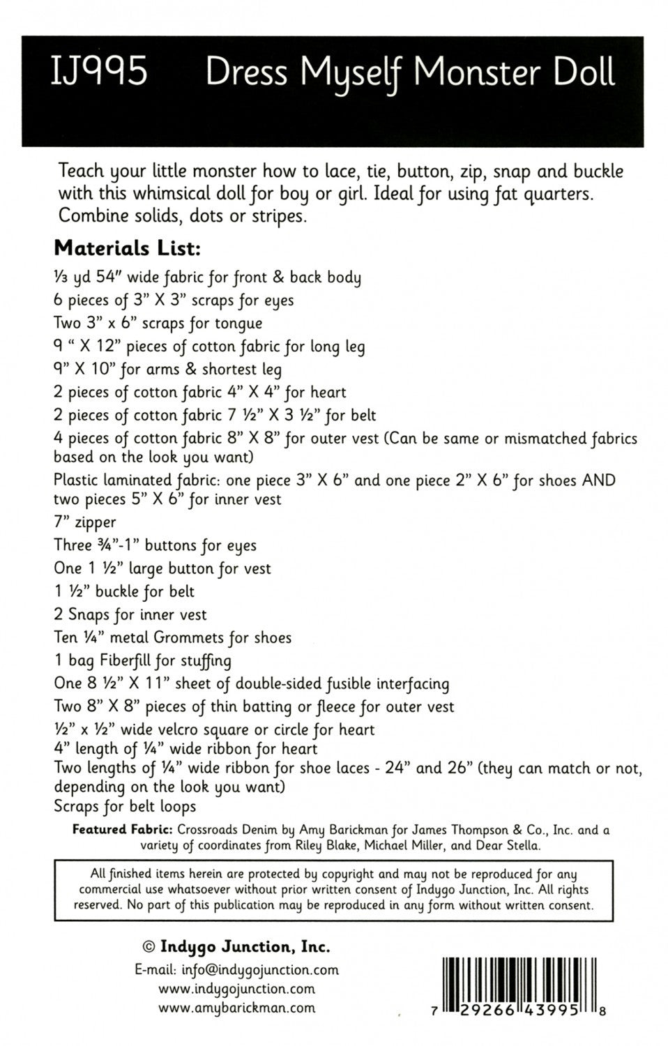 buckle with this whimsical doll for boy or girl. Ideal for using fat quarters. Combine solids, dots or