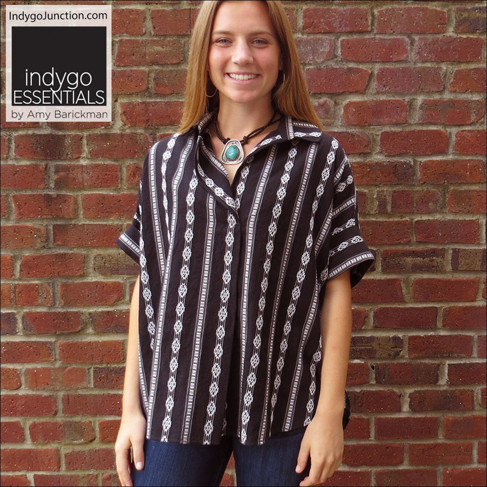 The Button Back Shirt provides a twist on the classic. Featuring front pleats, cuffed sleeves and back button details. Great top for all seasons. Add decorative buttons down the back (no need to make buttonholes) or leave it open! Ideal for shot cottons, voile, rayon, denim, batiks and linen. Sizes: XS - 3X