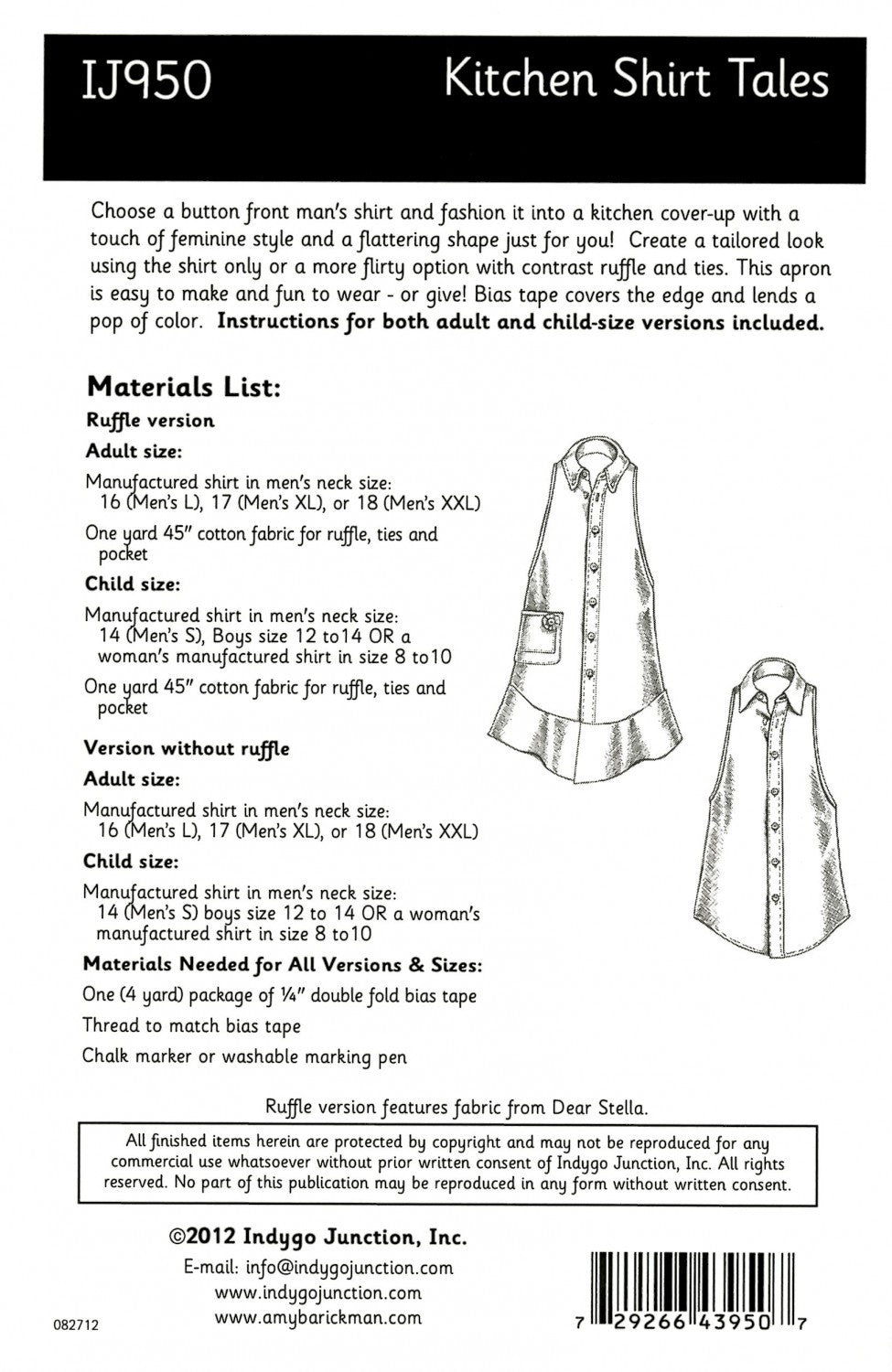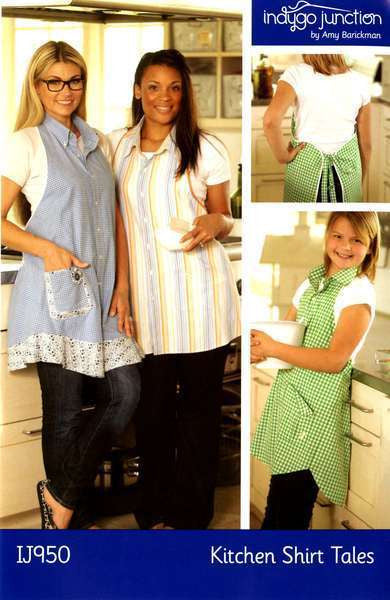 Choose a button front mans shirt from the back of his closet, the thrift store or the sale rack and fashion it into a kitchen cover-up with a touch of feminine style and a flattering shape just for you! Create a tailored look using the shirt only or a more flirty option with contrast ruffle and ties created from quilting cottons. This apron is easy to make and fun to wear - or give! Bias tape covers the edge and lends a pop of color. Instructions for both adult and child-size versions included. Patch pocket and cuff pocket instructions included.