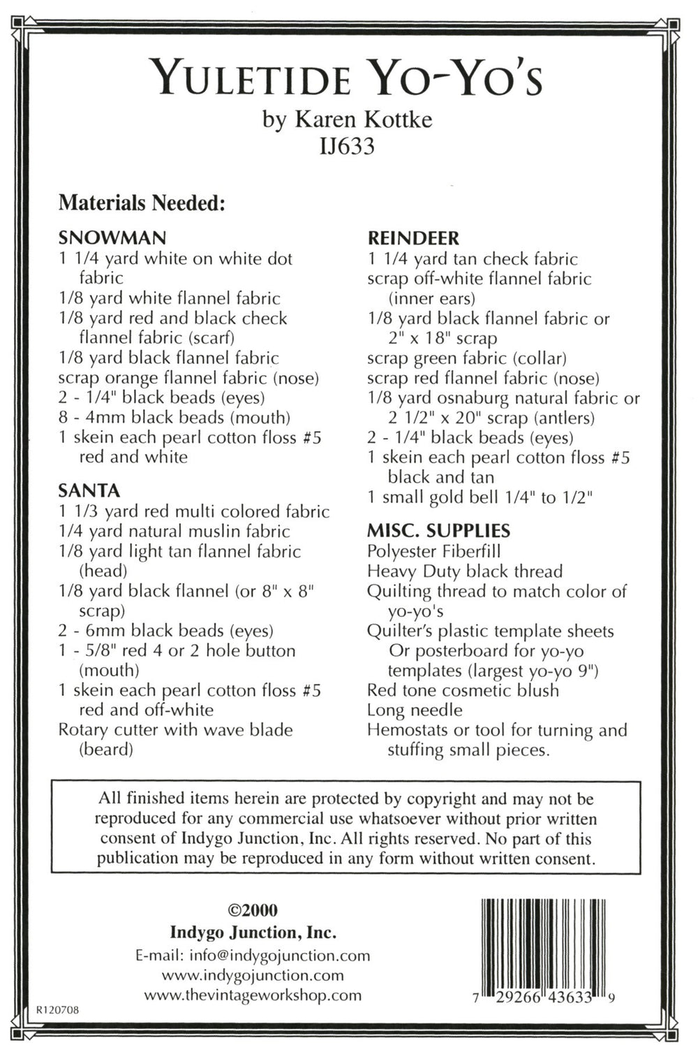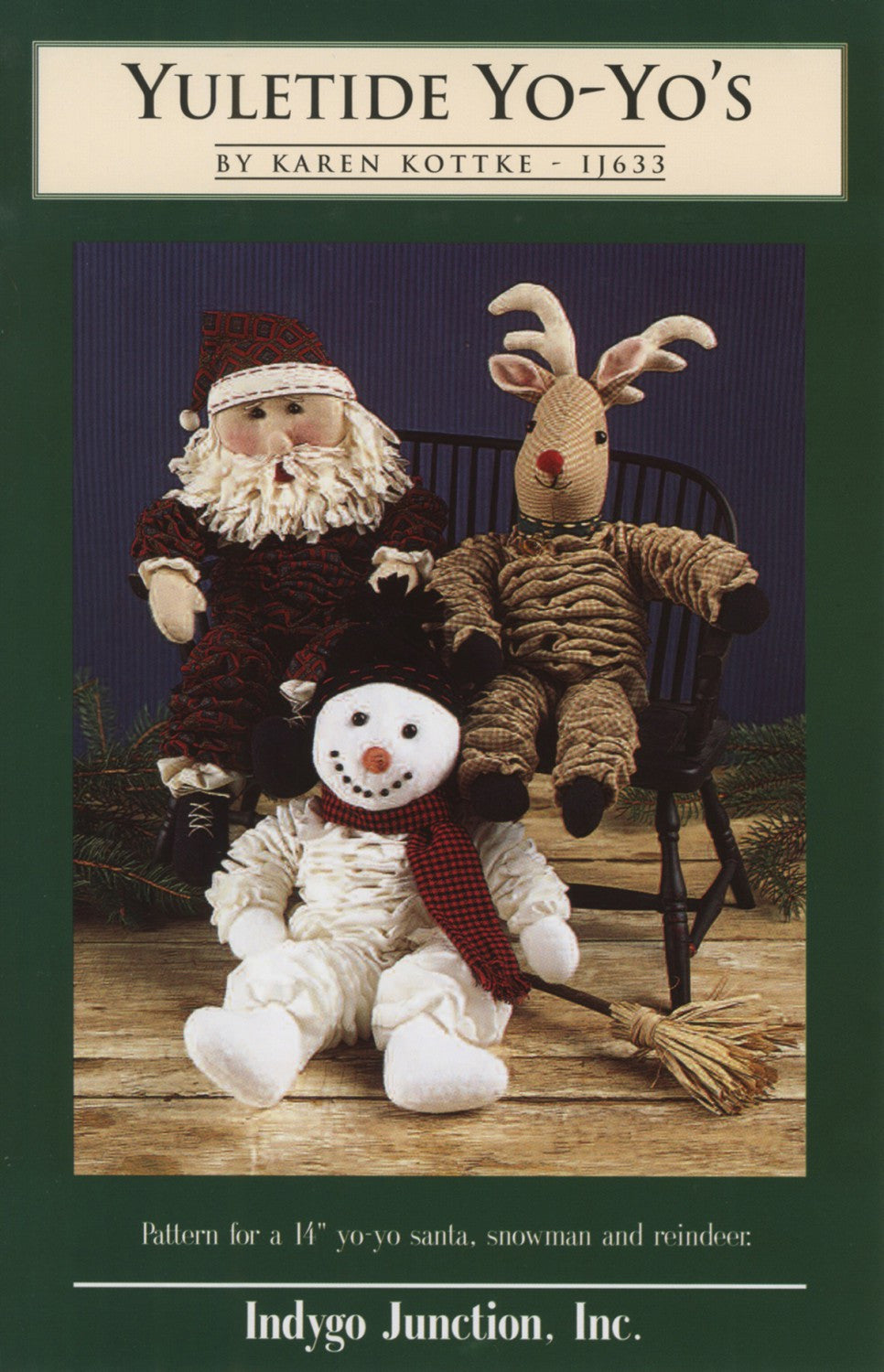 Pattern for a 14 yo-yo Santa, snowman and reindeer.