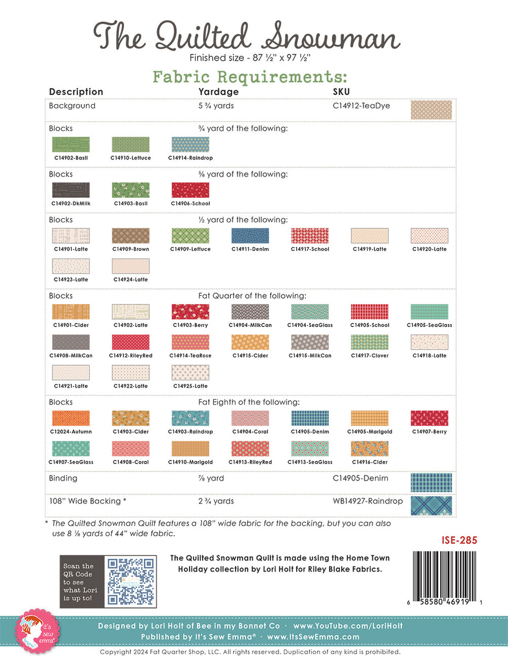 The Quilted Snowman Pattern is backordered and will ship as soon as it is back in stock.