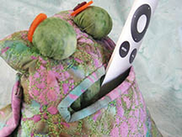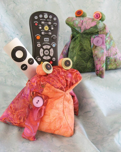 “Remote Toad” (51/2″-high, quilted, stuffed toads)