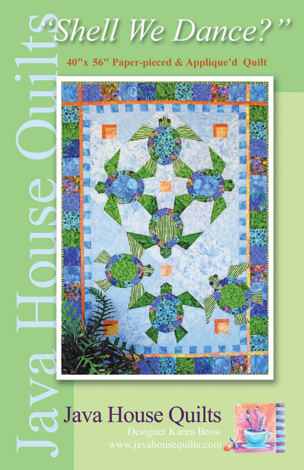This cooly-colorful lap quilt with water-dancing turtles uses paper-piecing and applique to construct the delightful blocks. Assorted background blues and bright turtle fabrics create the striking color combinations. The pieced borders add unusual detail and unity to this sure-to-please project.