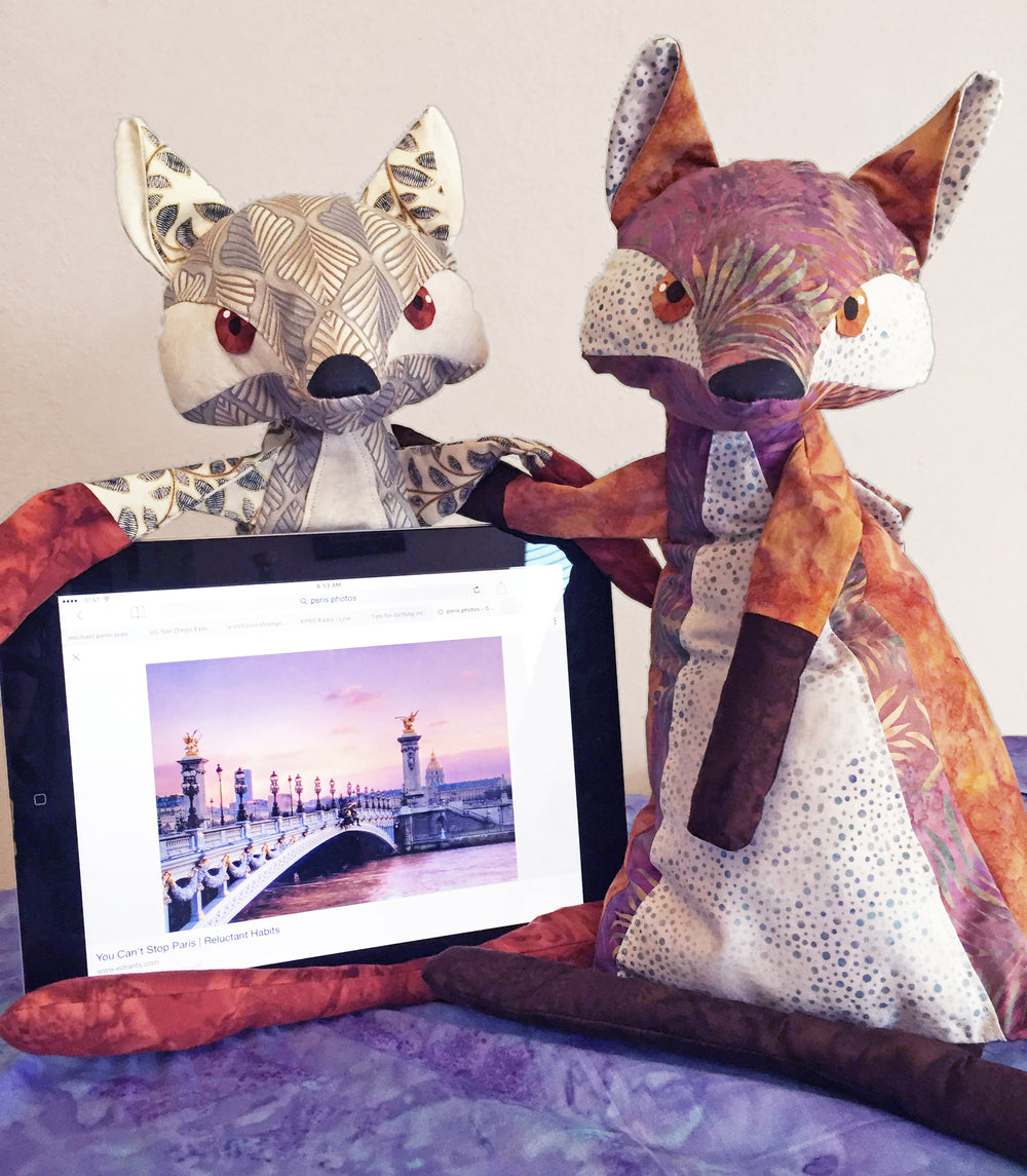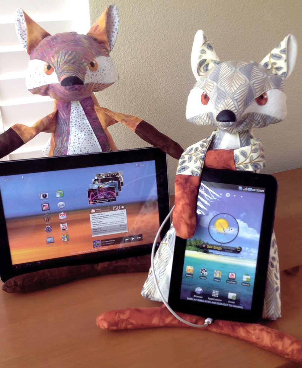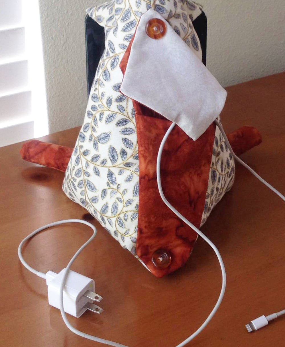 This 14in fox cushion is a tablet holder or perfect iphone stand. The tail doubles as a pocket for charging cord storage and the soft stuffing and movable arms help you adjust your screen to the perfect viewing angle. Cute, functional, fun to create! A charming gift for all ages.