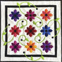 This is a little quilt with a big impact! Perfect for a table topper or small wall hanging. Piecing and applique combine for a flourish of movement and color - all grounded by the black in the borders and berries. Approximately 28" x 28".