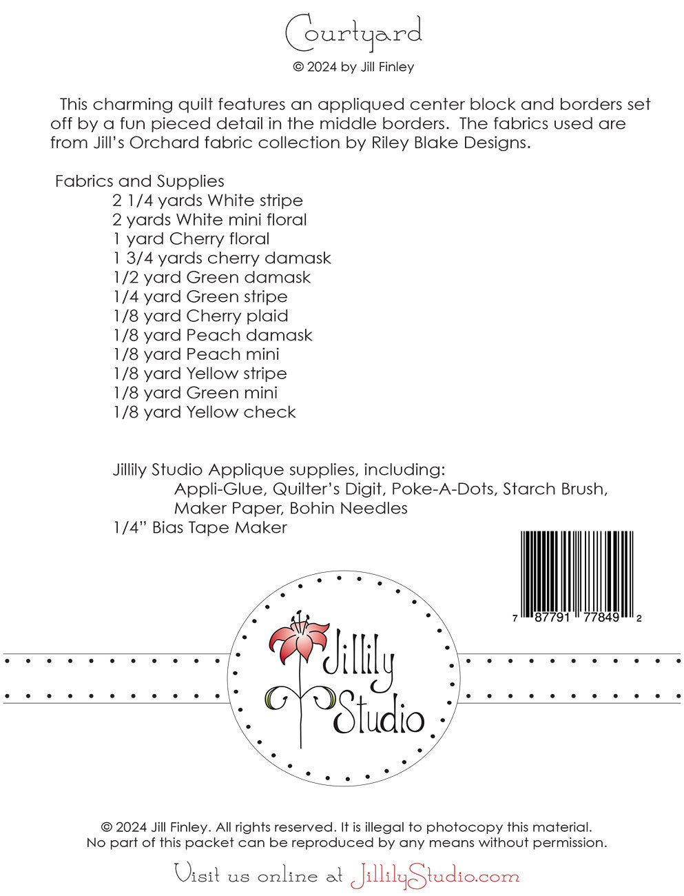 Courtyard Quilt Pattern is backordered and will ship as soon as it is back in stock.