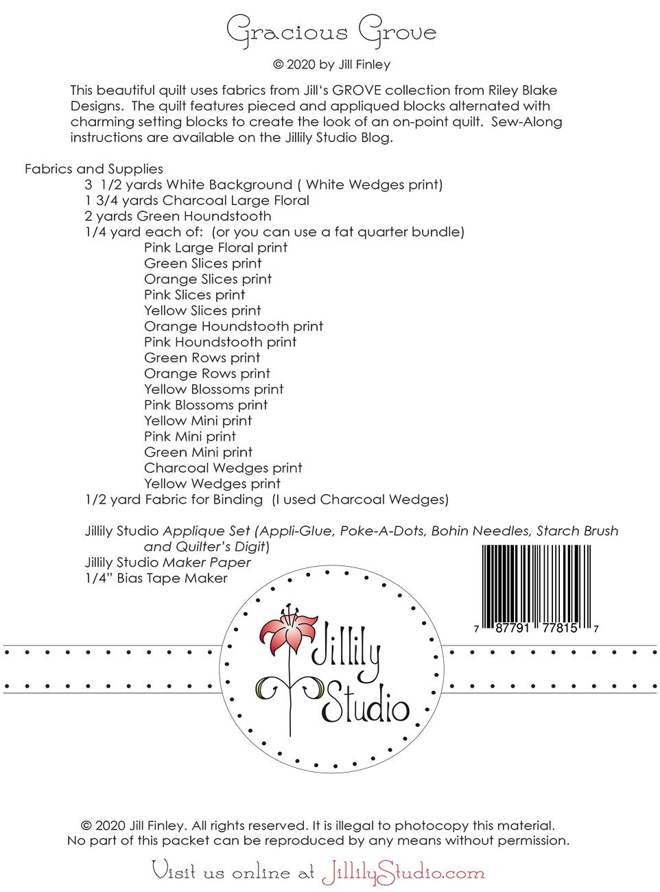Gracious Grove Quilt Pattern is backordered and will ship as soon as it is back in stock.