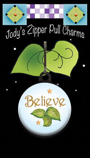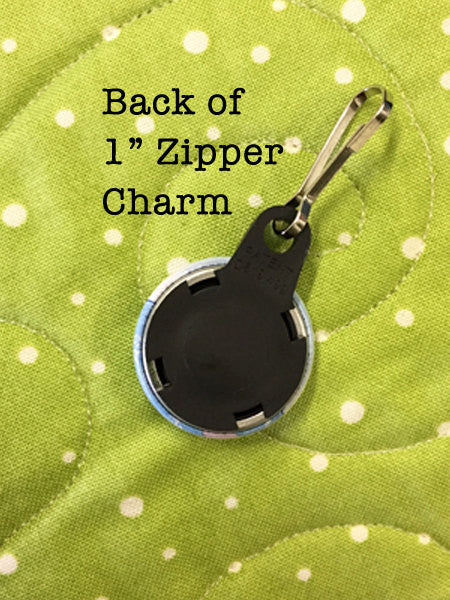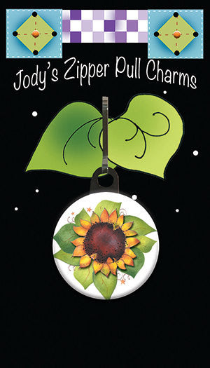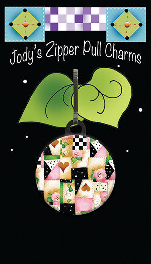 This little Zipper Pull Charm is 1" in diameter with a clasp to attach to your zipper on a vest, shirt, sweatshirt or the popular little zippered pouches. All of Jody's designs are her original artwork.