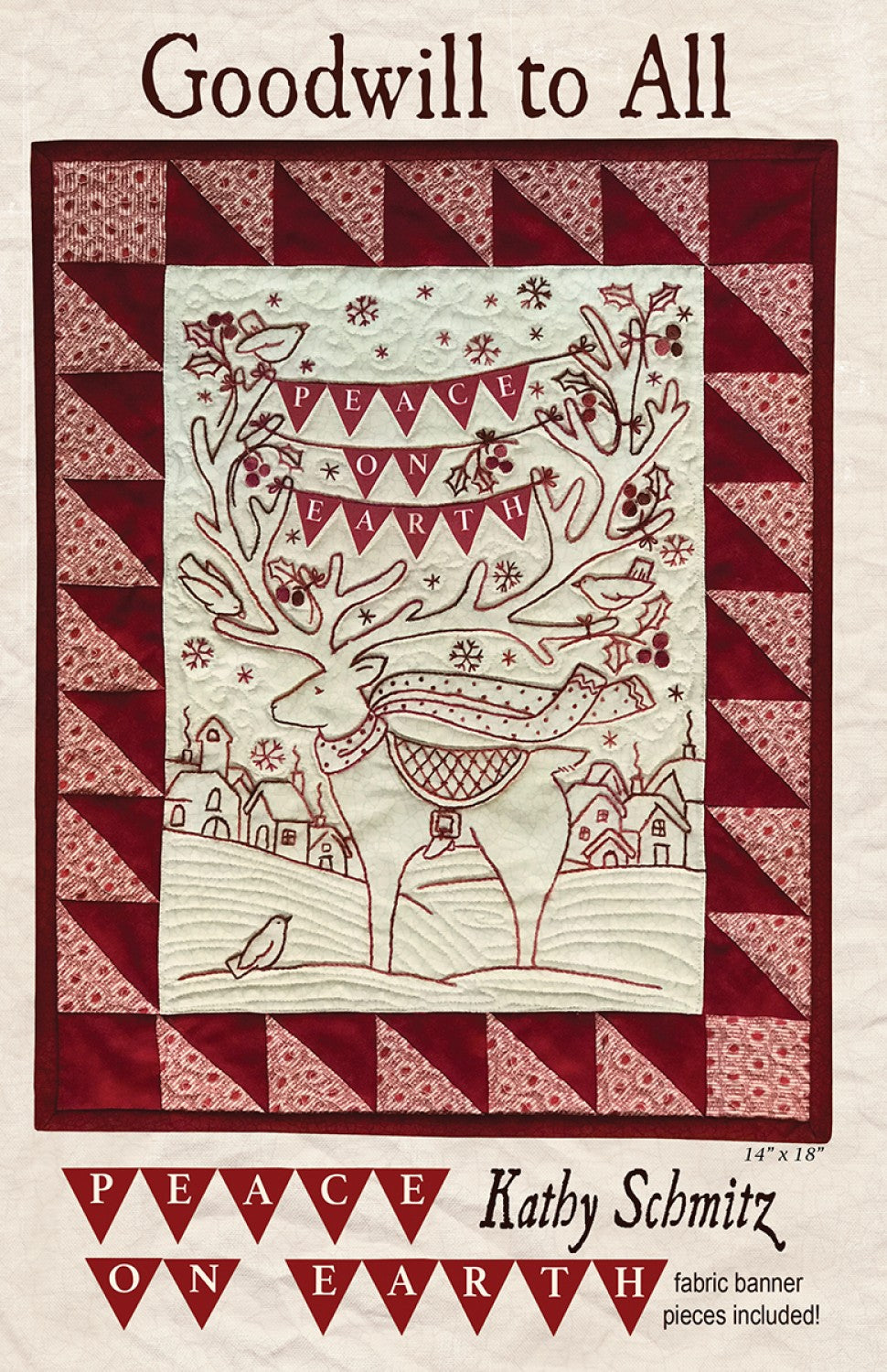 Goodwill to all and peace on Earth! This hand embroidered small wall decor is a cheerful way to celebrate the season of giving. 14in x 18in