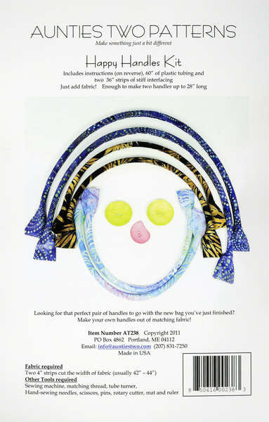 Looking for that perfect pair of handles to go with the new bag you just finished? Make your own handles out of matching fabric. Kit includes: 60in of plastic tubing & two 36in strips of stiff interfacing plus instructions. Just add fabric. Enough to make two handles up to 28in long.