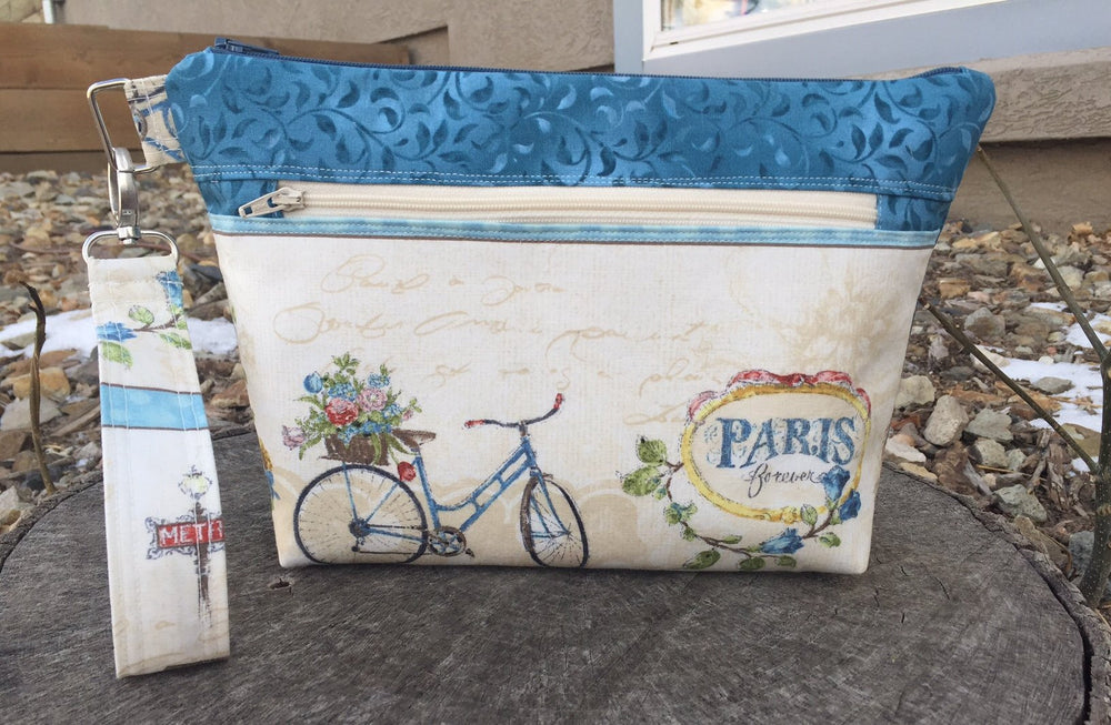 11in wide x 7in tall x 3in deep. Perfect size bag for sewing projects, cosmetics, purse organizer bag, and travel! Fits inside all Pink Sand Beach Totes and larger purses as a purse organizer. Four pockets - 1 outside and 3 inside. Easy zipper top closure. Fat quarter friendly. Great for classes and kits! Full color instructions with pictures. Use 1inch Swivel Hook & D Rings set - PSB220 (silver), PSB221 (gold), or PSB222 (black).
