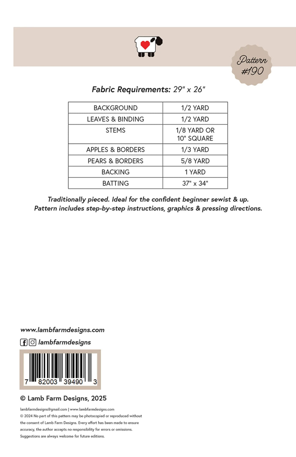 Featuring three apple blocks and three pear blocks, this traditionally pieced quilt celebrates the sweetness of the harvest season.