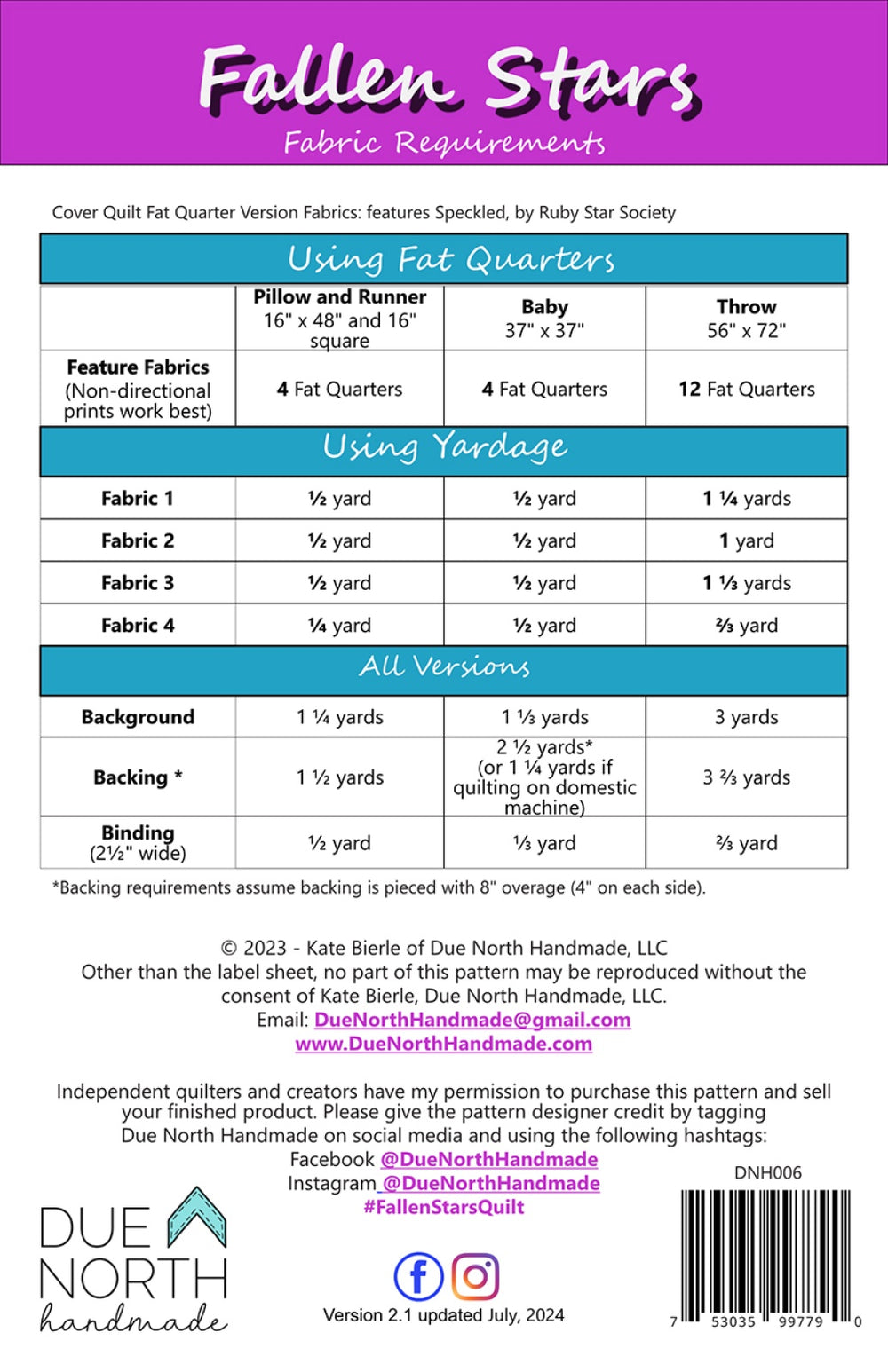 When a star falls, where does it go? This quilt pattern features a star design and can be made using either fat quarters or yardage.