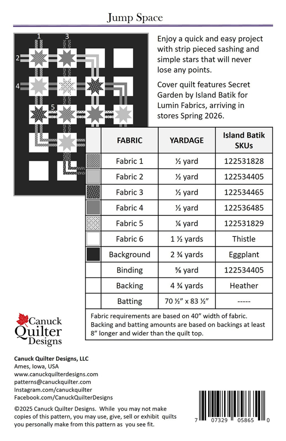 Jump Space Quilt Pattern is backordered and will ship as soon as it is back in stock.
