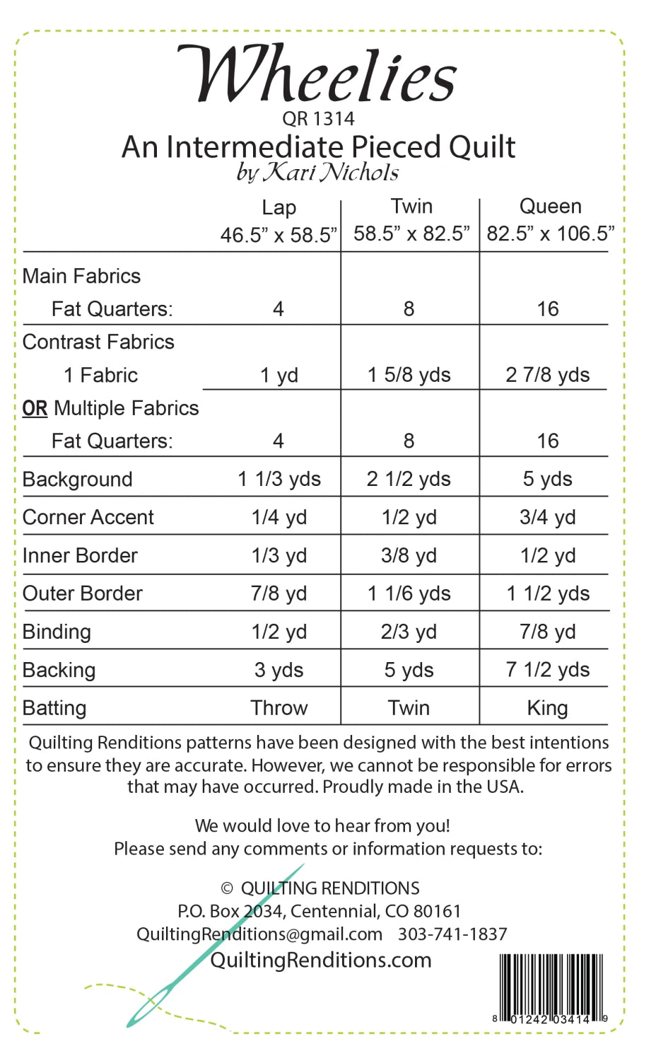 Wheelies Quilt Pattern is backordered and will ship as soon as it is back in stock.
