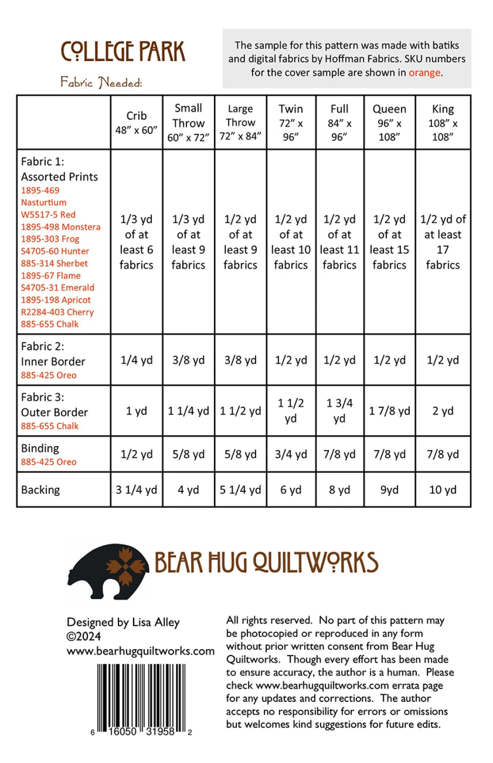College Park Quilt Pattern is backordered and will ship as soon as it is back in stock.