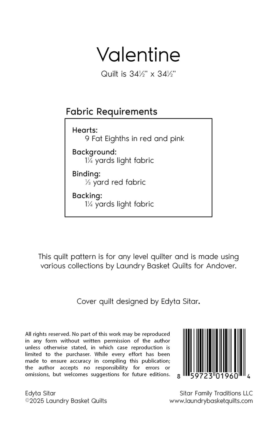 Valentine Quilt Pattern is backordered and will ship as soon as it is back in stock.