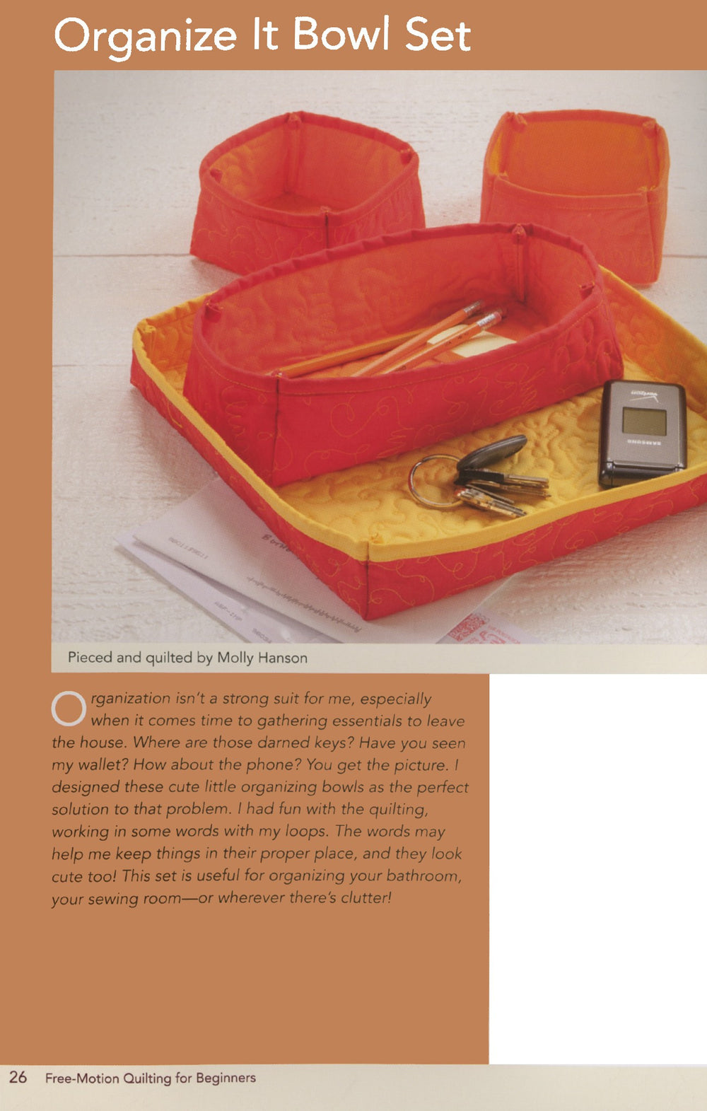 Master the fundamentals of free-motion quilting on manageable fat-quarter-sized fabric pieces”and turn the pieces into projects.