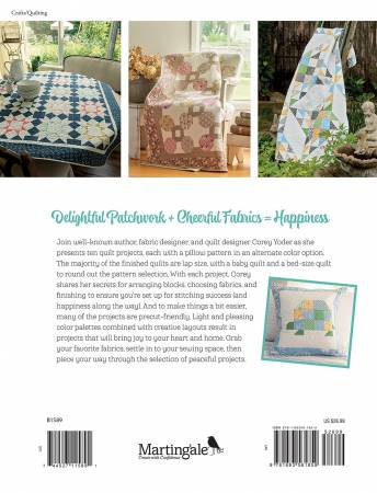 Light and pleasing color palettes combined with creative layouts result in projects that will bring joy to your heart and home. Grab your favorite fabrics, settle in to your sewing space, then piece your way through the selection of peaceful projects.