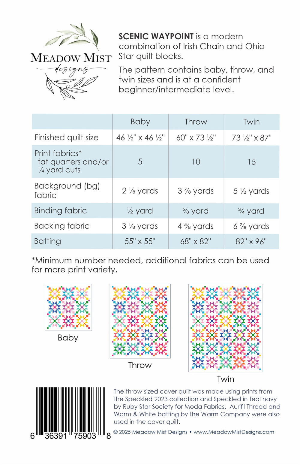 Scenic Waypoint is fat quarter friendly and contains instructions for baby, throw, and twin sizes.