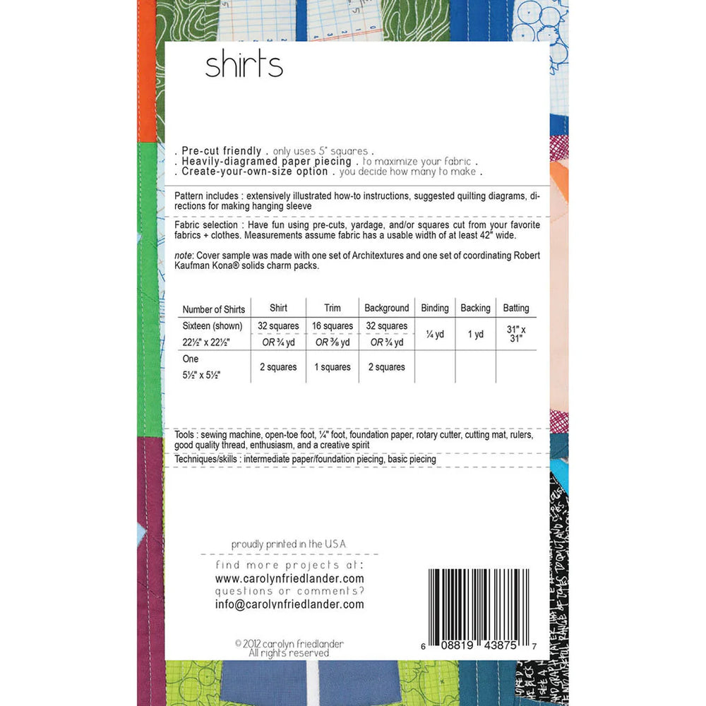 Shirts Quilt Pattern is backordered and will ship as soon as it is back in stock.